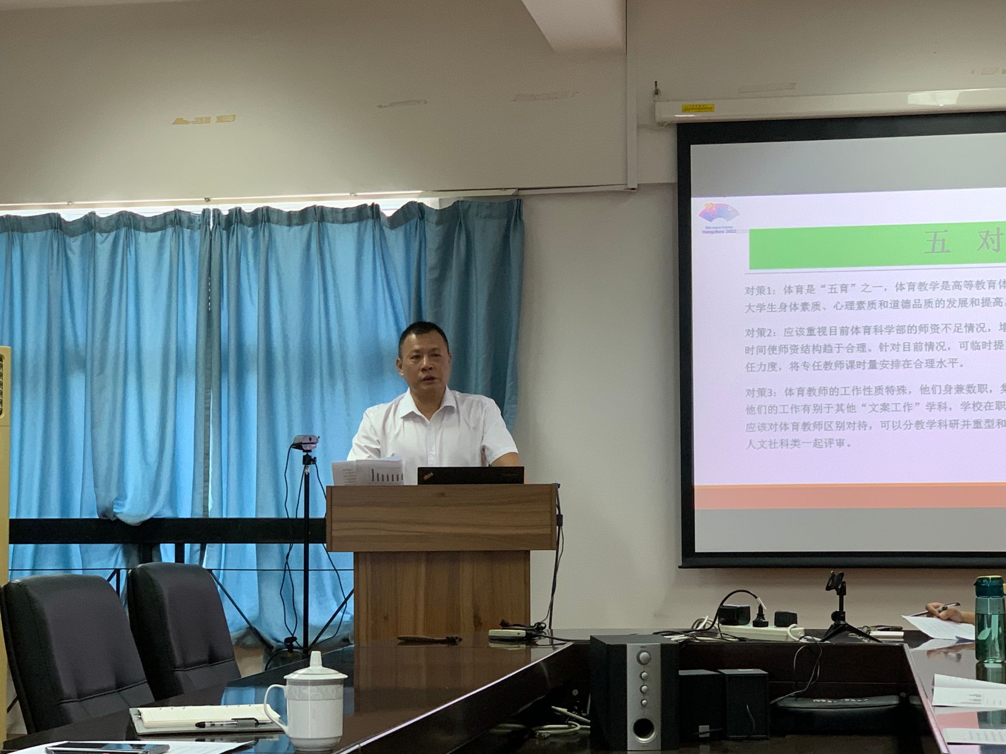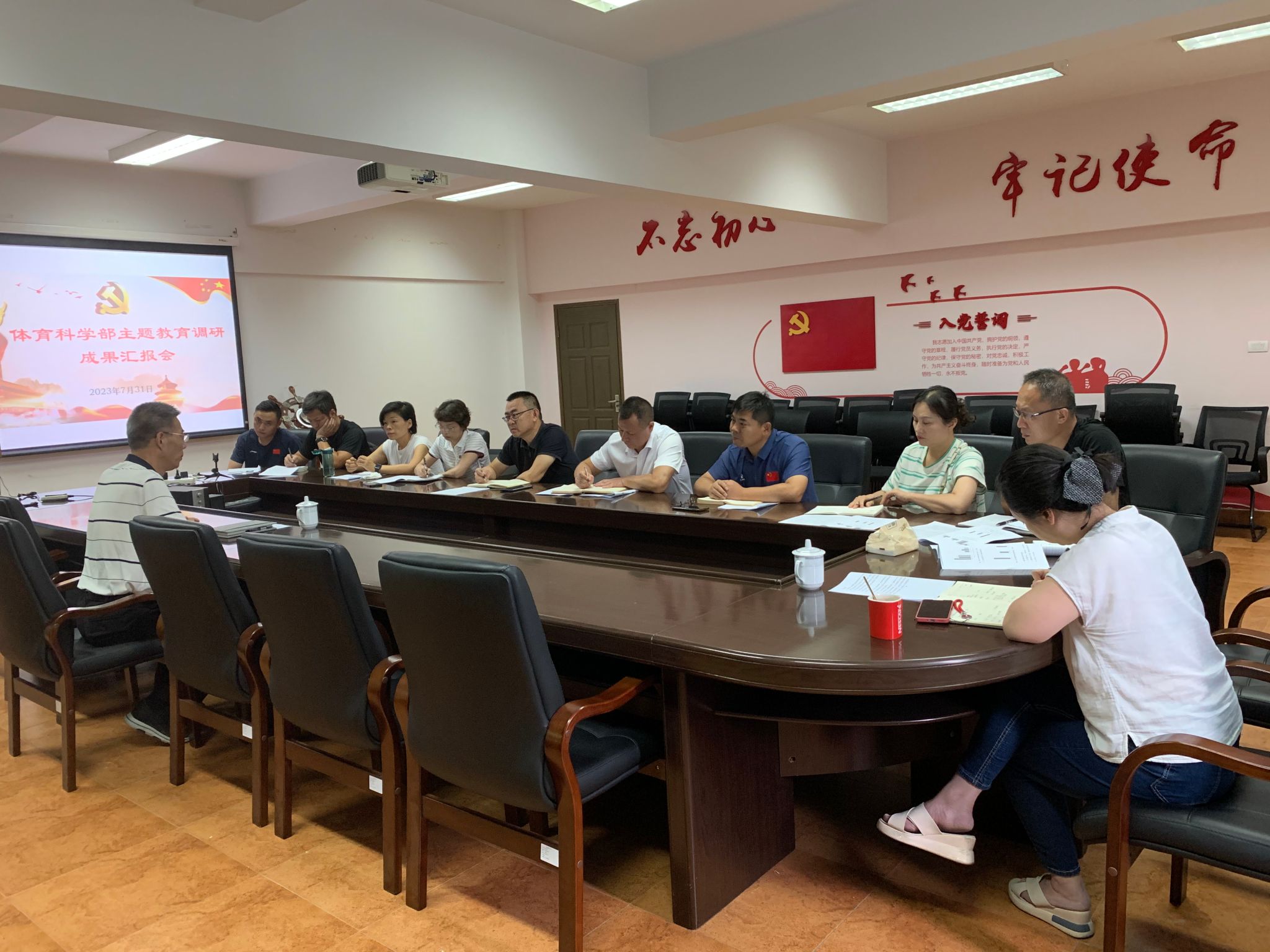 赵建中围绕学部教师队伍建设情况,进行了本次主题教育调研汇报。此次主题调研,立足学部工作实际,聚焦问题,深入省内同类高校公共体育师资队伍建设情况进行调研,找准工作短板,研究对策办法,推动问题解决。通过调查研究,进一步明确了学部的发展思路,完善工作举措,推动长效机制的形成;进一步加深了对习近平新时代中国特色社会主义思想的深刻领悟。