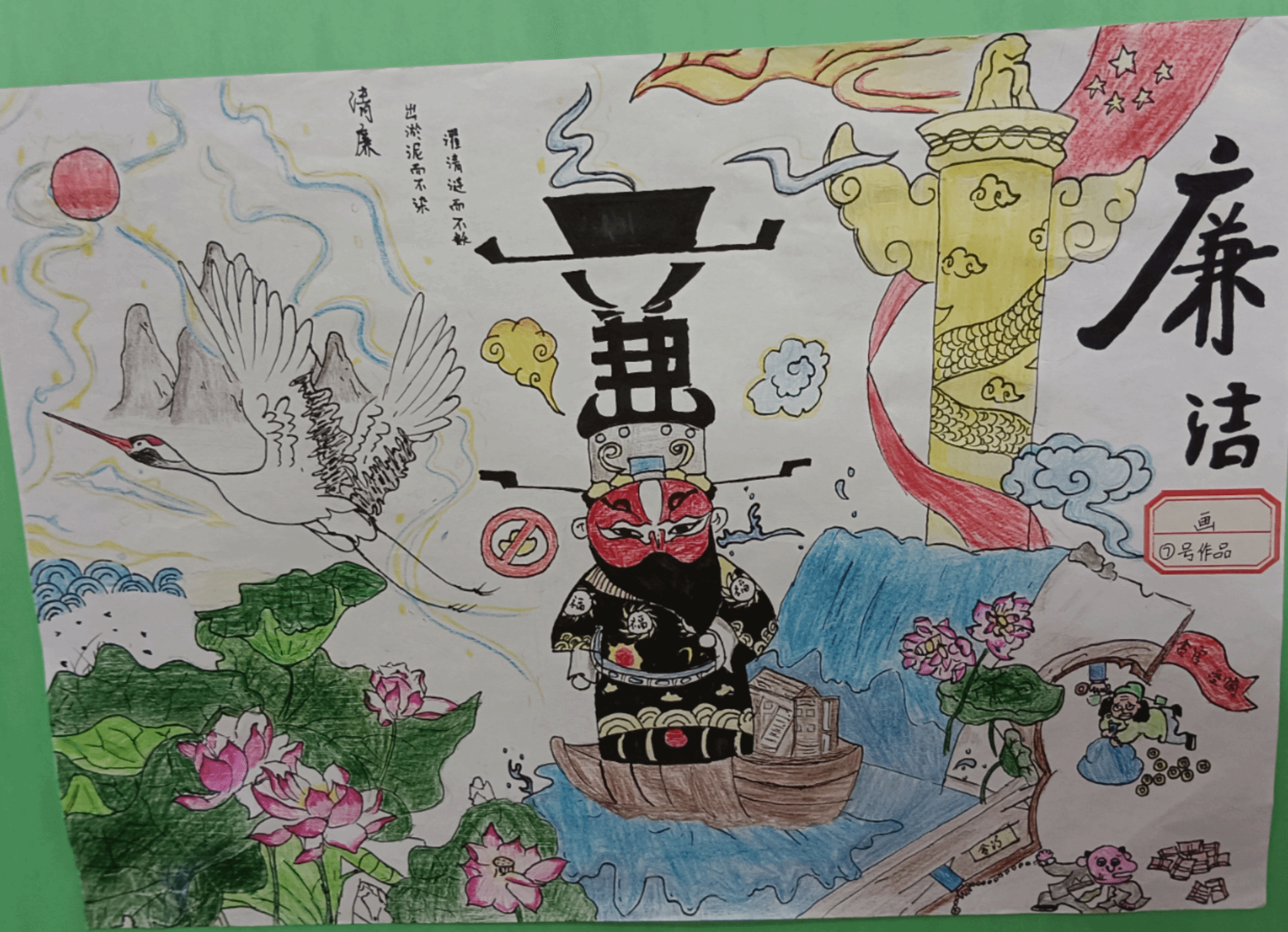 本次展览受到老师们的积极响应,共提交28幅作品。学部教师和家属通过书法、绘画、摄影作品,展现自己对清廉的理解、追求与实践。本次活动,为老师们、家属们以及孩子们提供了一个交流的平台,大家纷纷把自己对清廉的理解与信念融入作品中,在学部内营造出浓厚的文化氛围。亲子合作的形式,也让清廉的理念在下一代心中生根发芽。