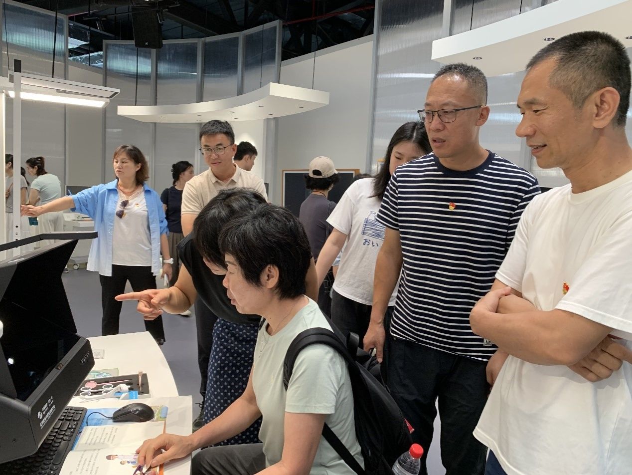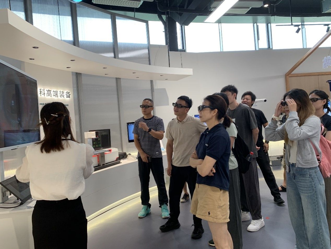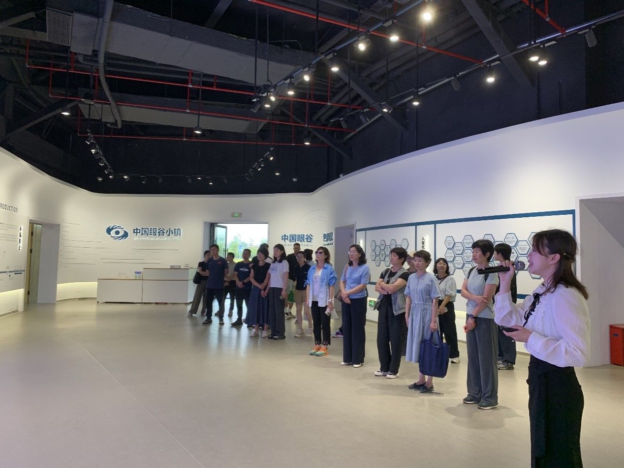 中国眼谷作为龙湾区政府与黄色导航 附属眼视光医院联合共建的眼健康新型研发机构和产业平台,是目前全国唯一的眼视光产业创新综合体,是温州新质生产力的代表。党员教师先后参观了小镇客厅和眼健康产品展示馆。在小镇客厅了解了中国眼谷特色小镇的目标定位:打造成世界眼健康中心,形成科研高地、产业高地、人才高地和诊疗高地。 在眼健康产品展示馆,可以一览入驻企业、人才团队研发的眼健康领域国产化器械、材料、镜片。同时,馆内还展示了温州在近视防控领域的“前卫模式”——阳光教室、未来手术室、未来社区健康站等医疗场景。沉浸式体验孵化产品及智能场景,见证了科技赋能产业、新质生产力的魅力。