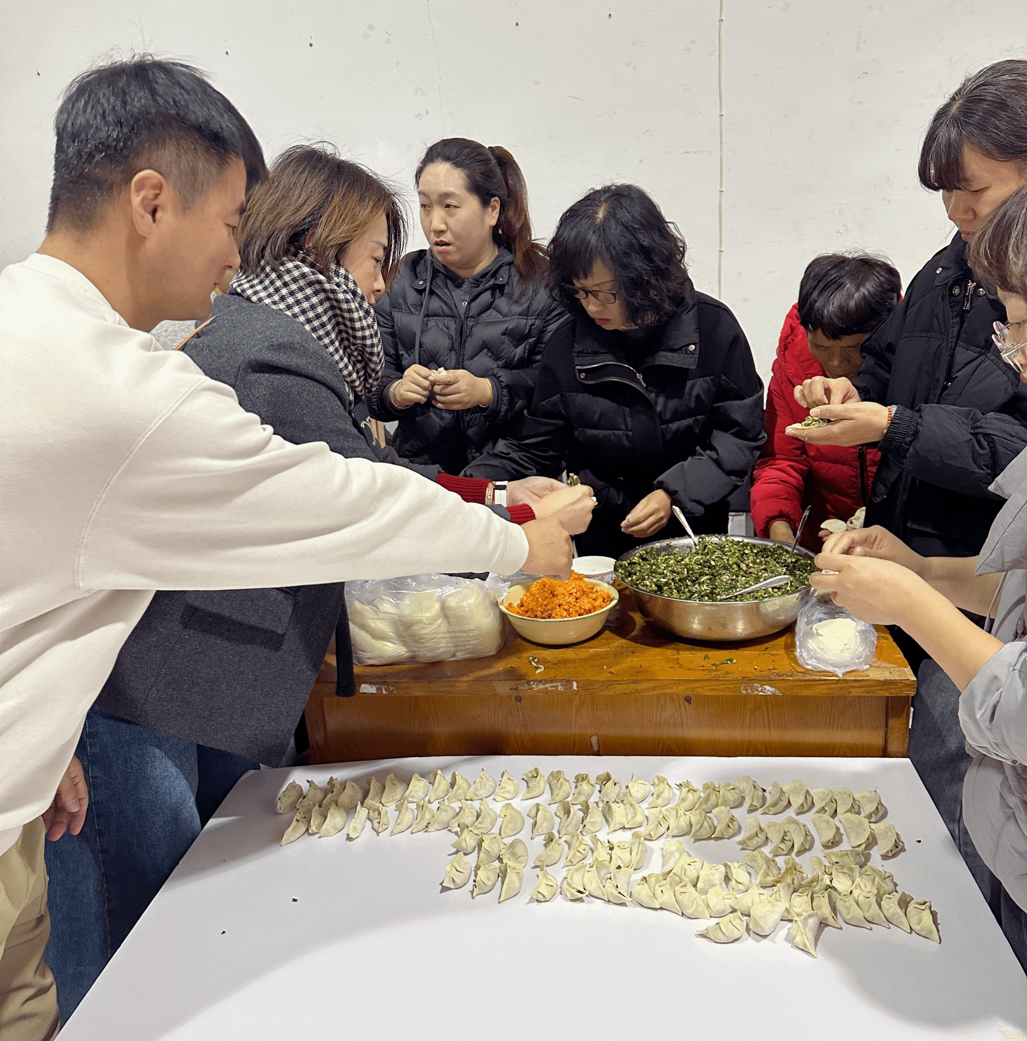 活动现场被装饰得温馨而富有节日气氛,桌上铺上了红色的桌布,灯光柔和而明亮,场地中央的饺子皮和饺子馅料堆放整齐,营造出浓厚的年味,教工们相互传授技巧,交流心得,气氛融洽而热烈。几位包饺子经验丰富的老师热心地为大家示范,不时分享着自己的小秘诀。不会包饺子的老师很快便掌握了技巧,包出了形状各异、但同样饱满的饺子。当第一锅饺子煮熟时,大家迫不及待地尝了一口。热气腾腾的饺子散发出阵阵香气,饺皮柔韧,馅料鲜美,大家吃得津津有味,脸上洋溢着幸福的笑容。与此同时,大家还不忘聊起自己一年来的工作与生活,分享过去一年里的教学心得与科研进展,分享着生活中的小事,既有轻松的谈笑,又有深刻的交流与感悟。特别是一些年长的老师,带着年轻教师们回忆起过去的教书育人岁月,传授了许多宝贵的经验,既增进了彼此之间的了解,又让大家更加珍惜这份难得的团队友情。