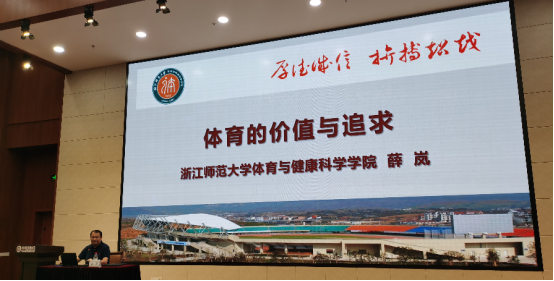 薛教授围绕理论和实践层面,从体育事业的神圣特性、健康特性、奋发特性、教育特性及体验特性五个方面详细阐释了体育的价值和内涵,并结合体育教育的实质和浙江省体育政策方针展望了体育高校教育工作者今后的努力方向。薛教授的讲座,语言幽默,内容丰富,事例鲜活,理论与案例相辅相成,生动展示了体育是生命之路,是无悔青春芳华,是内心的热爱,是无穷精神力量的真谛,让在座的教师受益匪浅。