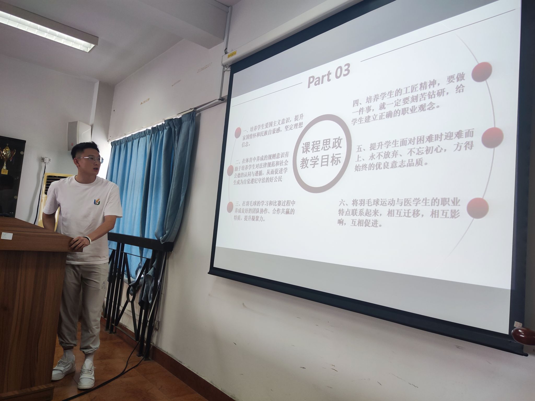 本次比赛吸引了学部全体教师共同参与,来自四个教研室的9名年轻教师参加比赛。参赛教师们围绕各自专业和课程特点,深入挖掘课程蕴含的思政元素和承载的育人功能,将思政案例巧妙地融入到说课设计当中。通过融入爱国教育,团结协作,顽强拼搏,永不言败等精神,将体育教学的显性技能教育和隐性的思政教育有机结合,充分体现了体育的育人功能。本次比赛选出一等奖2名,二等奖3名,三等奖4名。