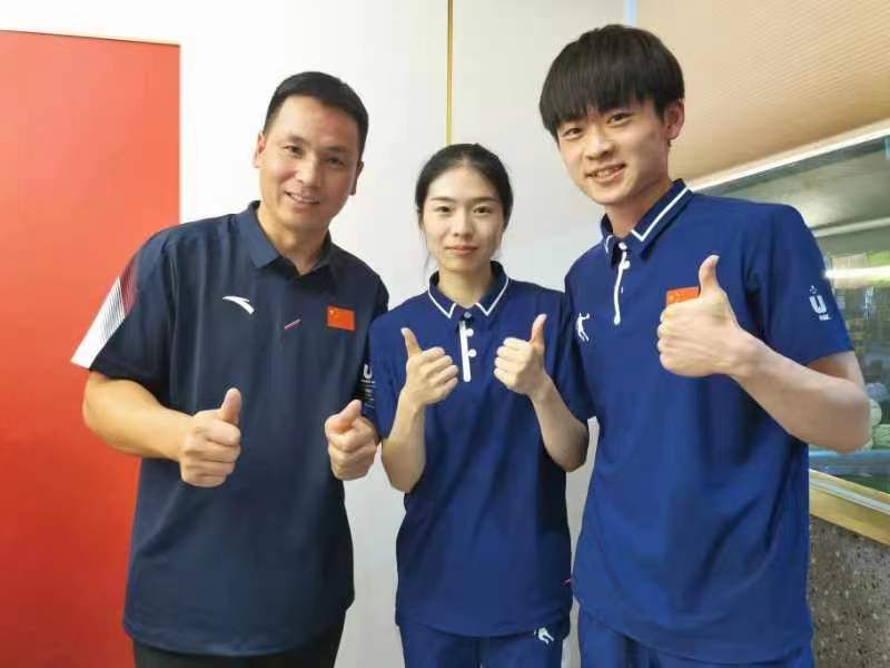 (跆拳道项目首金混双冠军梁婕、刘思玥合影)