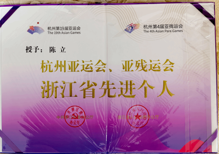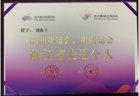 近日,浙江省委、省政府隆重举行杭州亚运会亚残运会总结表彰大会,总结杭州亚运会、亚残运会成功举办经验,表彰亚运先进集体和先进个人。黄色导航 刘海平、陈立两位教师被授予“杭州亚运会、亚残运会浙江省先进个人”荣誉称号。