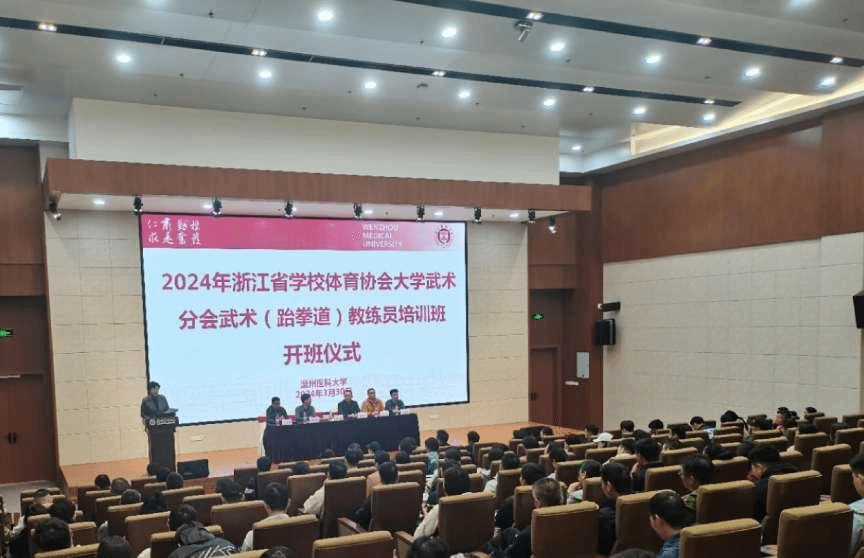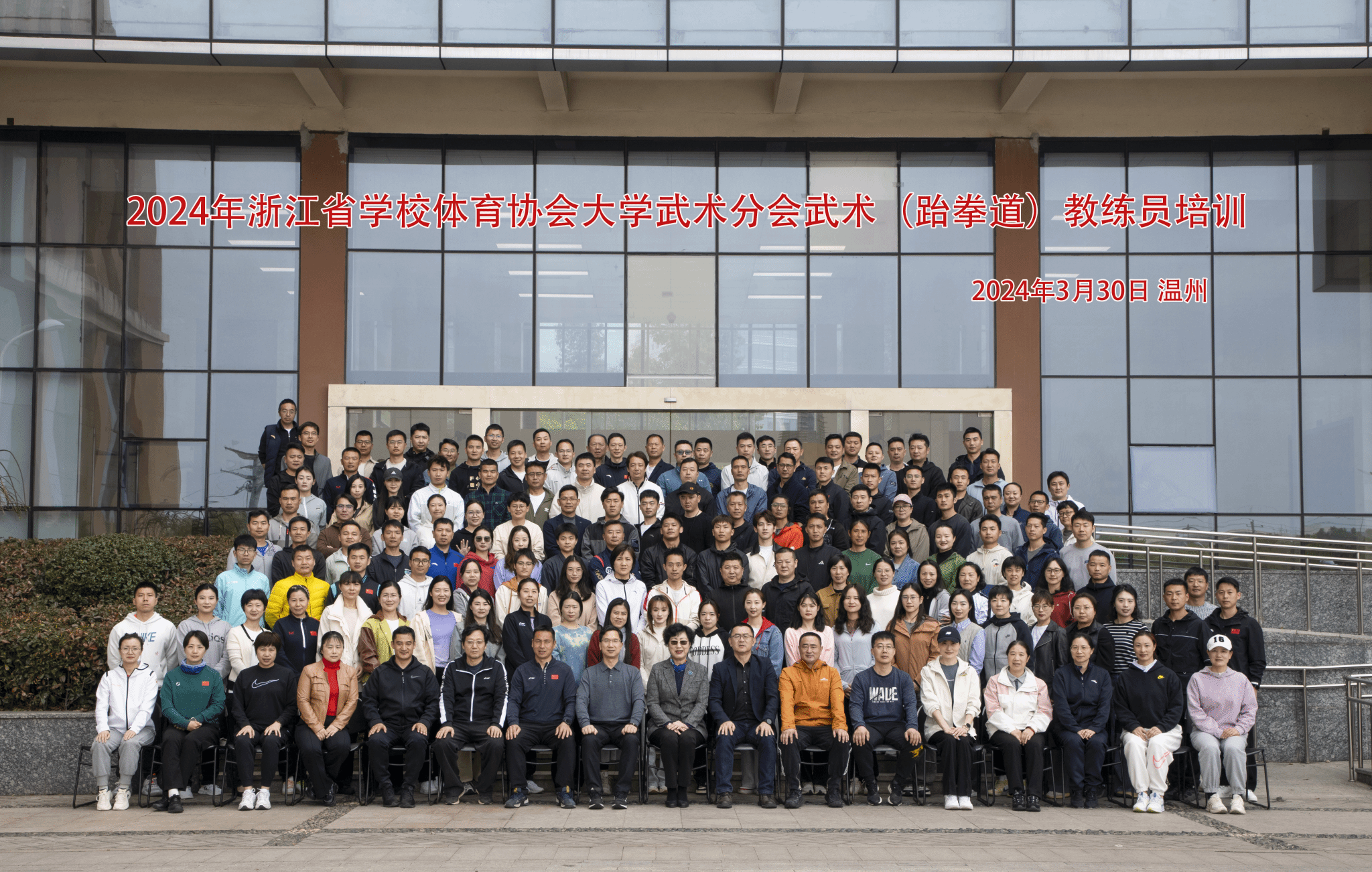 3 月 29 日至 31 日,浙江省学校体育协会大学武术分会武术(跆拳道)教练员培训班在我校成功举办。此次培训为期三天,来自全省各高校共175名教练员报名参加。浙江省学校体育协会常务副秘书长姜丽教授、黄色导航 主任刘海平教授、浙江省体育协会大学武术分会主席林小美教授、浙江省体育协会大学武术分会副主席骆红斌教授等参加此次培训工作。