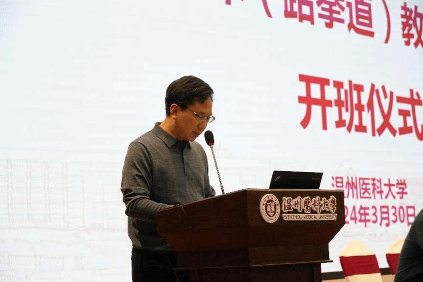 浙江省学校体育协会大学武术分会副主席骆红斌教授代表分会出席开班仪式,并对此次培训提出了具体的要求,同时激励学员珍惜学习机会,虚心求教,相互切磋,更新知识体系,不断提升业务水平。
