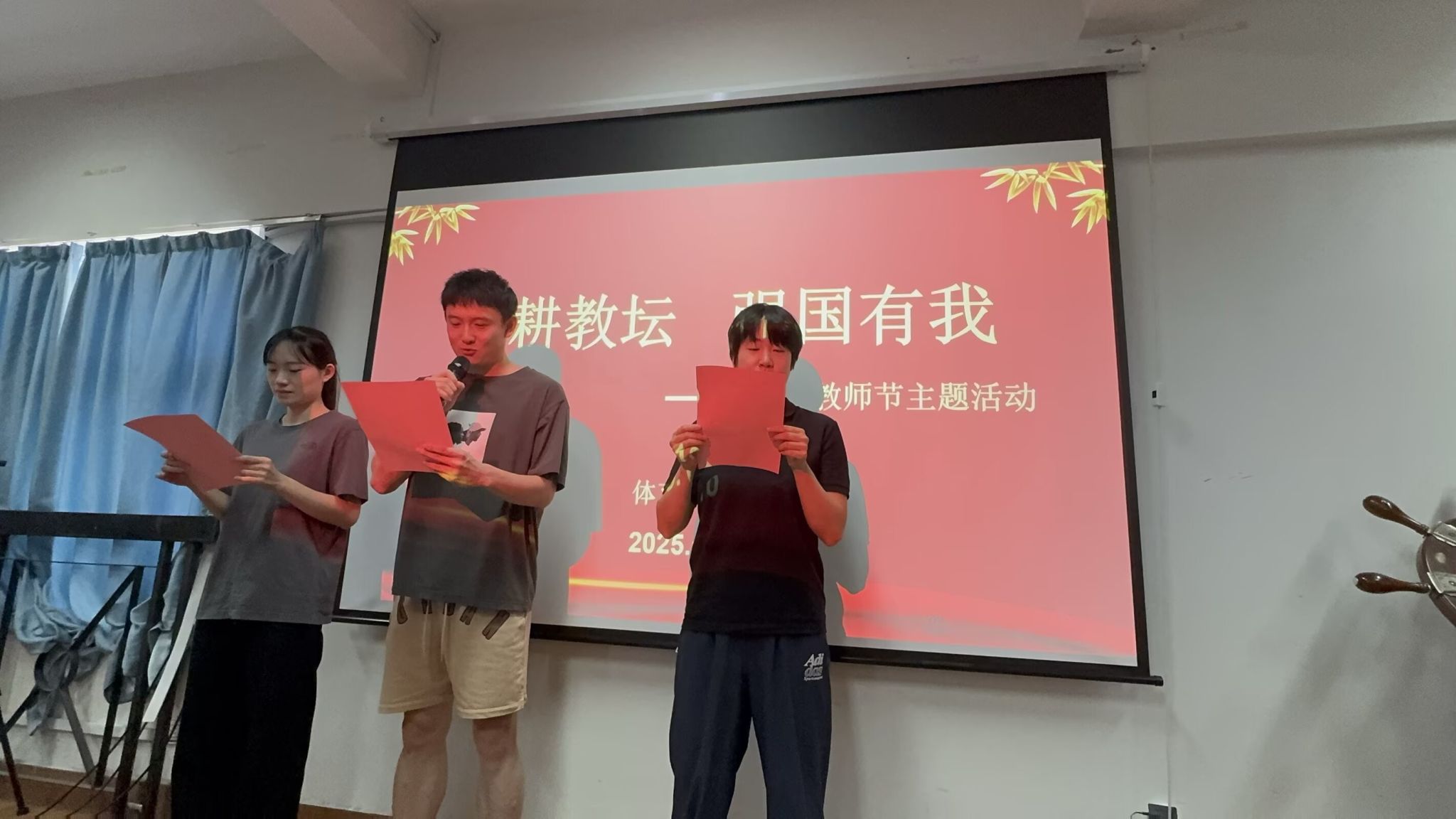 当天,黄色导航 在体育馆402会议室举办“躬耕教坛 强国有我”教师节主题活动。全体教职工齐聚一堂,共同庆祝属于自己的节日。王在韬、张千轶、林汝涵三位年轻教师朗诵《谢谢您,老师!》,铿锵有力的声音、真挚饱满的情感,生动表达了青年教师对教育事业的热爱。