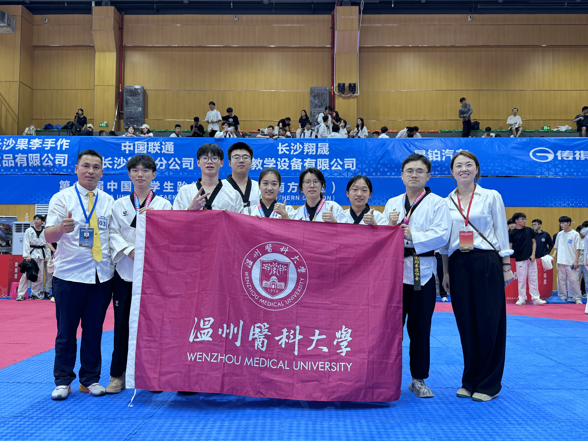 • 2024年5月19日至25日,第18届中国大学生跆拳道锦标赛(南方赛区)在湖南长沙隆重举行。本次比赛由中国学生体育联合会主办,中国学生体育联合会大学跆拳道分会执行,共有242所高校、2251名运动员参赛。此次比赛,我校派出了由董凤鸣老师任教练、多名优秀运动员组成的代表队,在比赛中取得令人瞩目的成绩,荣获多项殊荣。我校王守都老师应邀担任本次比赛副裁判长。