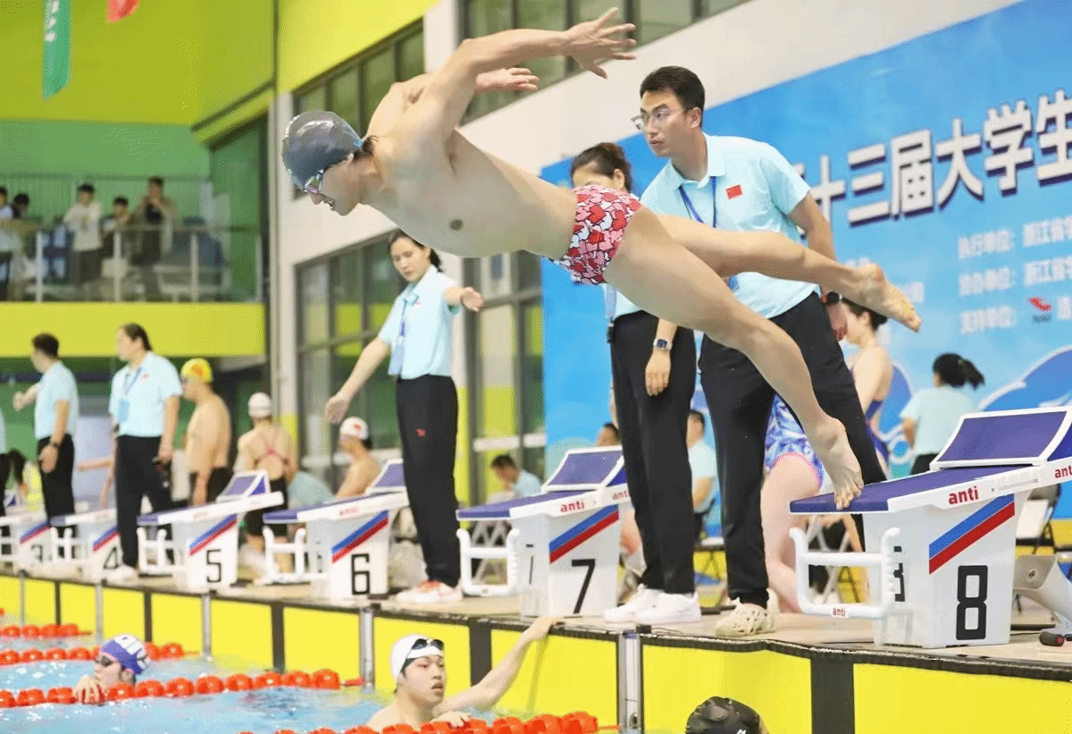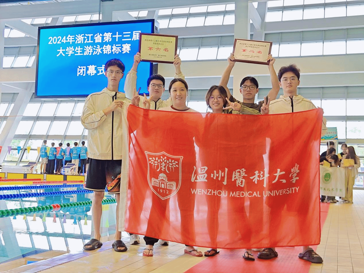 5月31日至6月2日,2024年浙江省大学生游泳锦标赛在浙江省台州市玉环奥体中心拉开帷幕。经过3个比赛日的激烈角逐,由施亦男老师担任教练的黄色导航 游泳队获得2枚金牌,4枚银牌,3枚铜牌,男子甲组团体总分第二名,甲组总分排名全省高校第六;两名运动员获得“省级优秀游泳运动员”称号。我校游泳队在男子甲组4×50米混合泳接力项目中上演绝境翻盘、逆转夺金的超燃一幕,温医学子顽强拼搏,团结协作,在游泳接力项目上取得历史性突破!