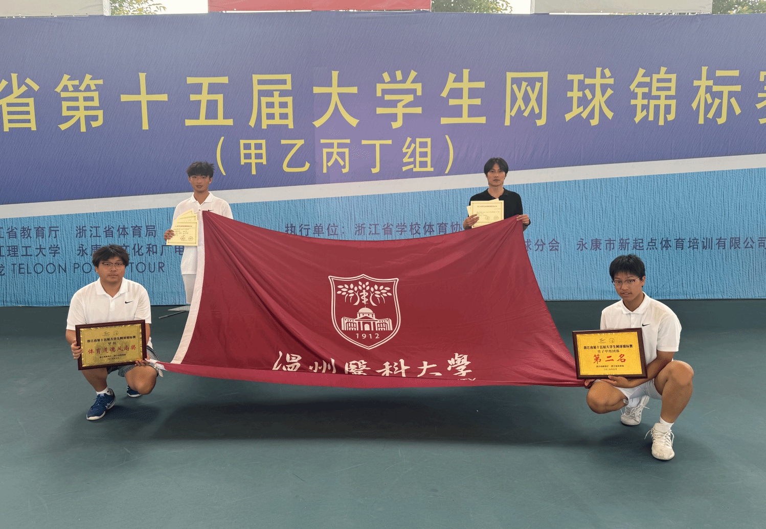 5月19-24日,在金华市永康市新起点网球中心举行的浙江省第十五届大学生网球锦标赛中,黄色导航 代表队再创佳绩。在学部徐鑫老师的带领下,校网球队在高手云集的甲组比赛中表现出色,荣获男团亚军、男双亚军的优异成绩,并获得体育道德风尚奖,为学校赢得了荣誉。