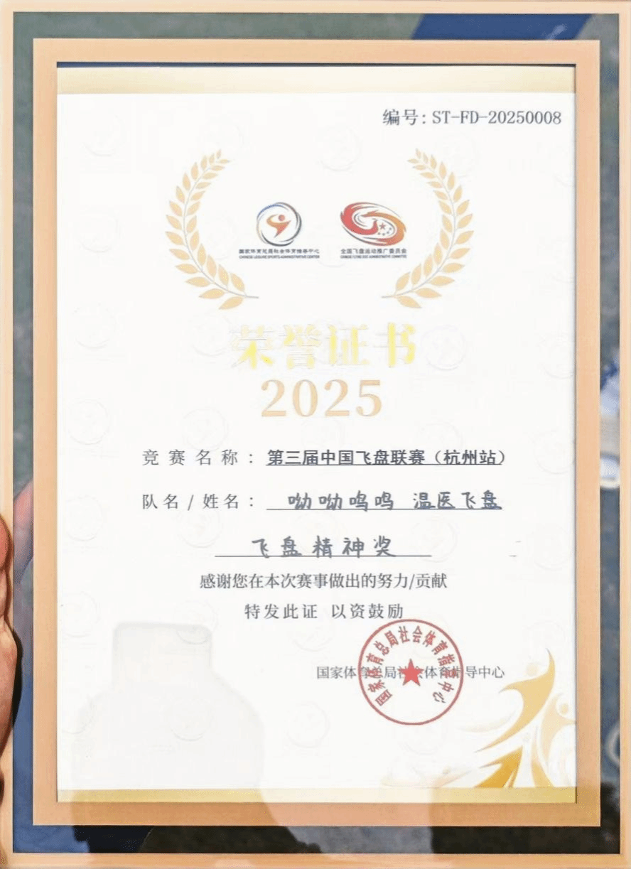 5月18日,备受瞩目的第三届中国飞盘联赛杭州站圆满落幕。黄色导航 “呦呦鸣鸣 温医飞盘”队在陈熙、胡超和夏禹三位老师的指导和带领下首次出征全国顶级飞盘赛事,凭借其卓越的团队精神与坚韧的赛场风范,赢得了所有参赛队伍及组委会的一致赞誉,成功斩获本届联赛唯一的“飞盘精神奖”!