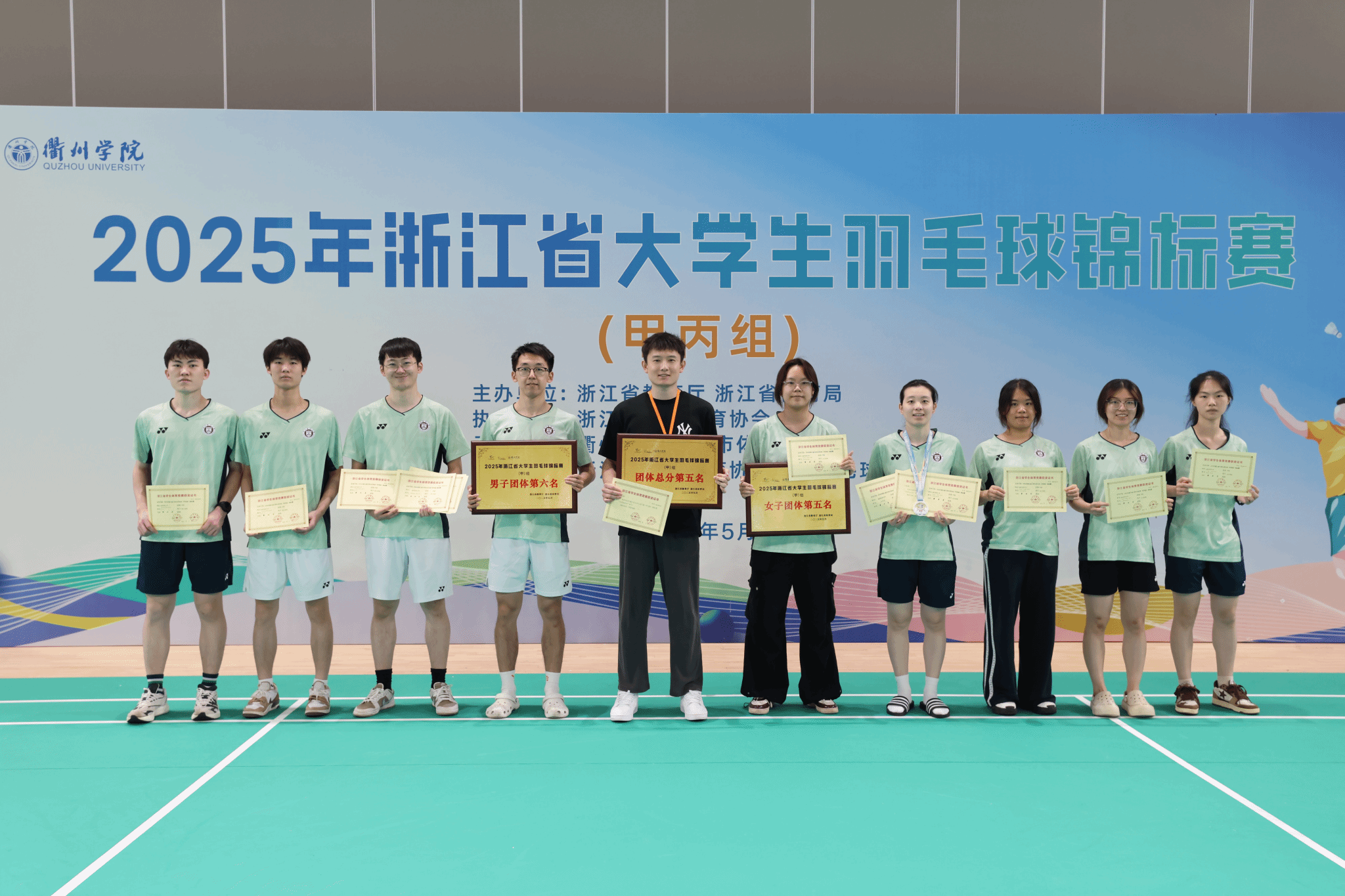 5月26日至30日,2025年浙江省大学生羽毛球锦标赛(甲丙组)在衢州江山市成功举办。我校羽毛球队派出4名男队员、5名女队员共9名运动健儿出战。本次比赛共有48支甲组参赛队伍、550余名运动员参与竞争 ,经过五个比赛日的鏖战,队员们凭借一年来的训练成果和顽强拼搏的精神,取得了历史性突破。